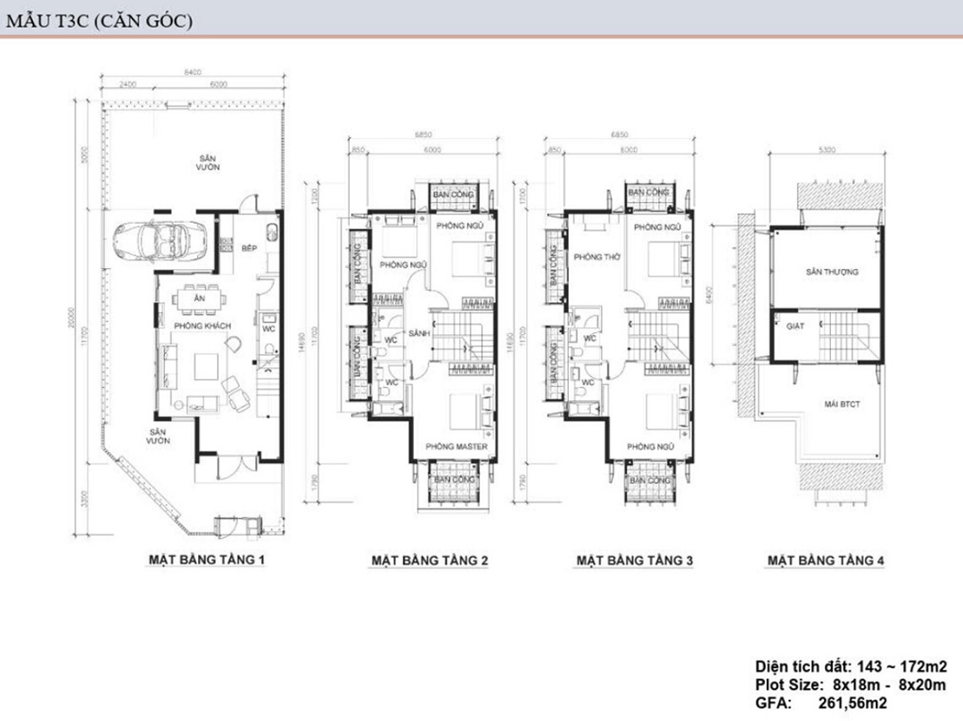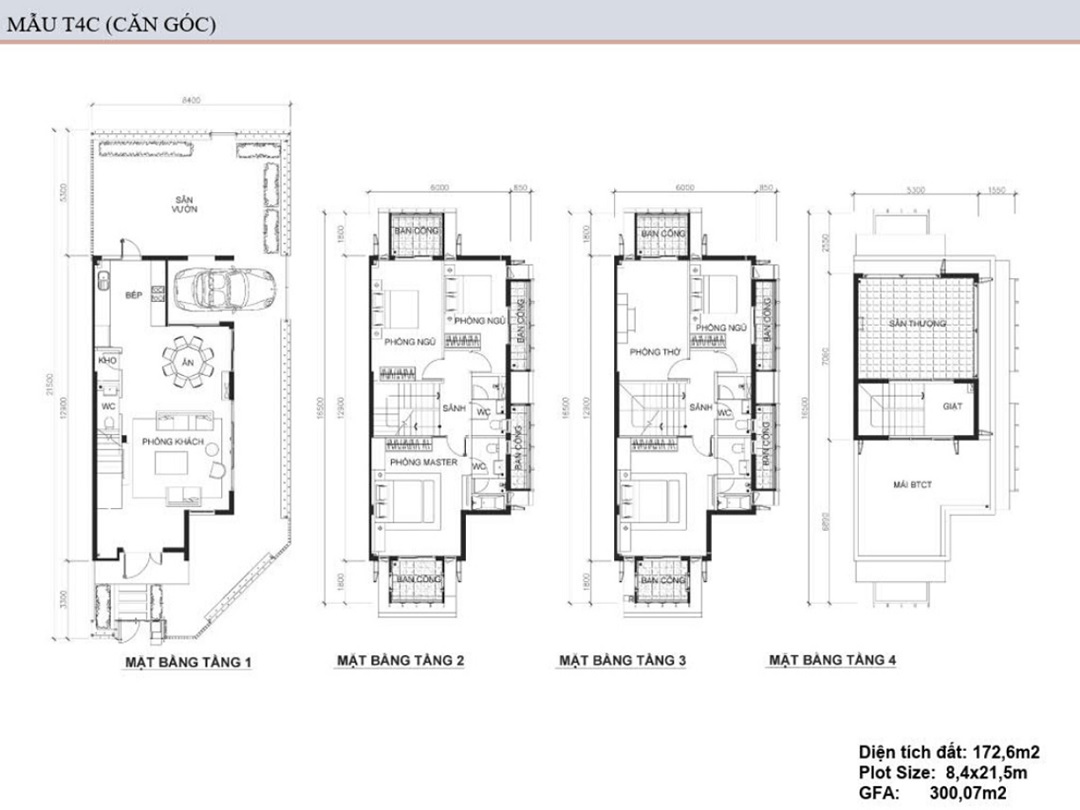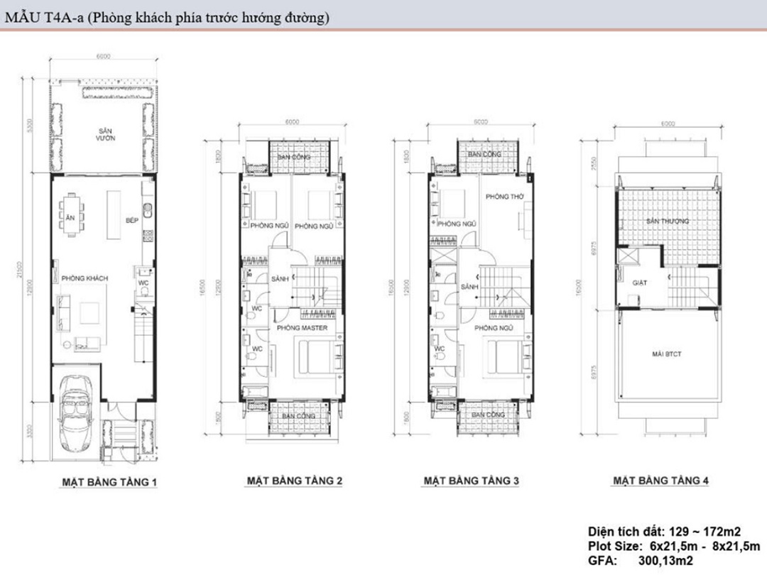 Diện tích của các căn biệt thự từ 300 đến 580 mét vuông. với kết cấu hiện đại và dễ sử dụng. Không gian thoáng mát với nhiều cây xanh là lợi thế. Điều này làm cho biệt thự và nhà phố dự án trở thành nơi an cư đắt giá.