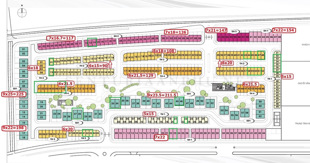 Kiến thiết Senturia An Phú là một mảnh đất hình dạng chữ nhật đẹp. phát triển 355 sản phẩm, trong đó chi tiết mặt bằng thiết kế được trình bày dưới đây.