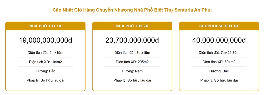 Giá bán Nhà Phố Biệt Thự Senturia An Phú giai đoạn 1 bao gồm hàng sang nhượng